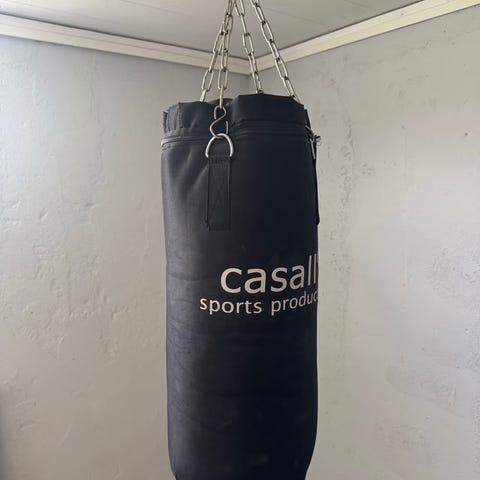 Casall boxsäck med upphängningskedja, svart färg (säljs enligt skick på bilderna, säcken är hel) 80x30x30 cm