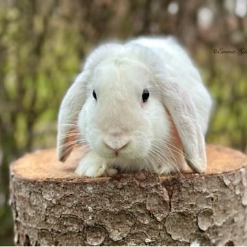 Vit, blåögd dvärgvädurshona på 8 månader.