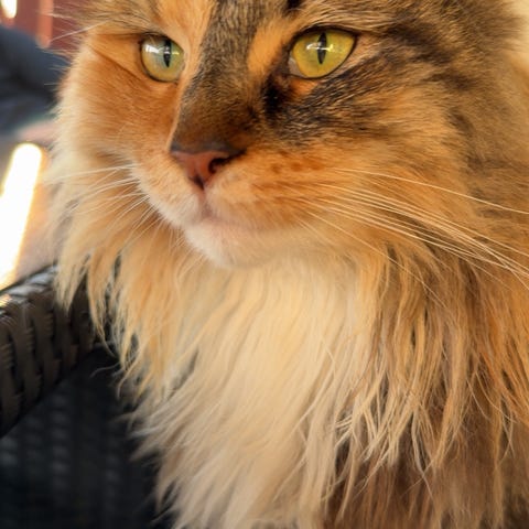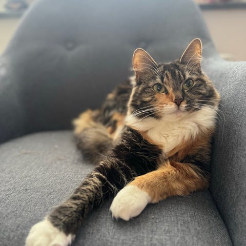 Underbar, snäll och go tjej som fyller 2 år nu den 20/12. Extra tummar och tår. Har bott tillsammans med andra katter här, även med hund och det fungerar bra. Aldrig någonsin blivit arg och slagits utan tar kattlivet med en klackspark. En helt exemplarisk jägare! Gått in och ut som hon själv velat här. Tyvärr så har allergi upptäckts bland barnen och det är inte längre hållbart tyvärr!