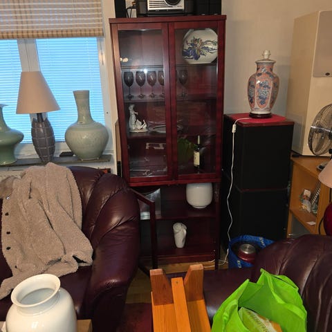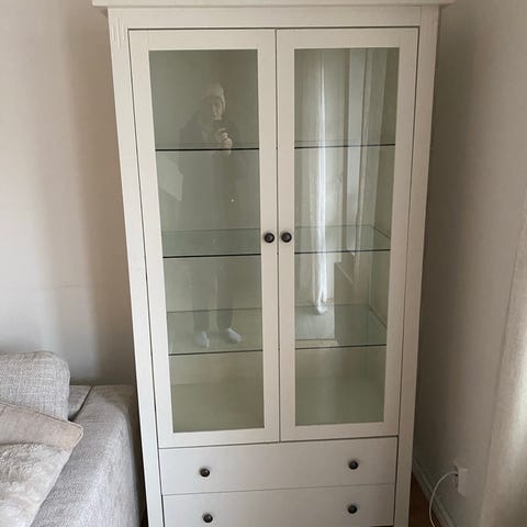 Ett äldre ommålat Hemnes vitrinskåp från IKEA.