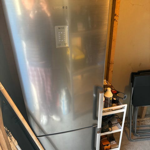 Cylinda kombiskåp med kyl- och frysfunktion. Skåpet har en Samsung kombiskåp med kyl- och frysfunktion. Skåpet har en digital temperaturdisplay och flera hyllplan för förvaring. Yttermaterial i rostfritt stål. Passar för allmän kylning och frysning av matvaror.