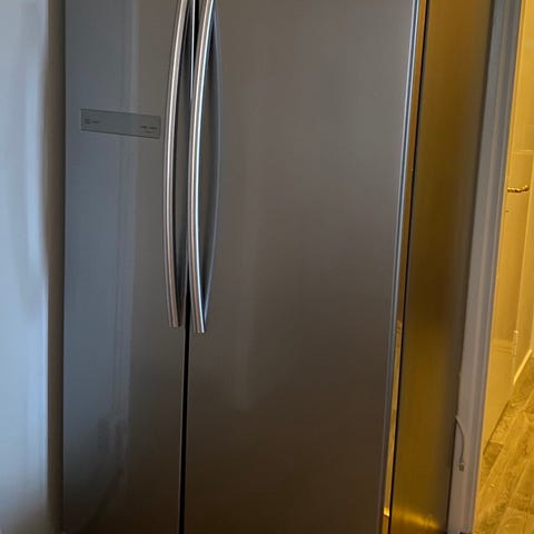 Electrolux Side-by-Side kylskåp med två separata dörrar för kyl och frys. Vit färg och standardstorlek för hemmabruk. Designad för att ge separat förvaring av kyl- och frysfack. Mycket fräscha och jätte fina.