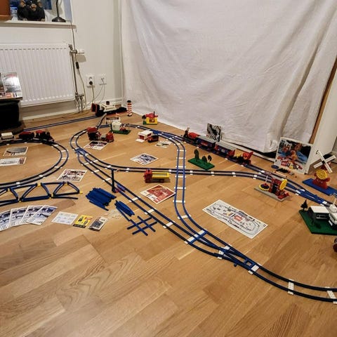 -Ask 4: set nr. 1310 'Esso filling station' (Ej komplett, skadad ask) - Vissa bitar saknas, vissa är sol-skadade, se bilder - fullständig inventarielista kan mailas vid behov - Separat pris 7.000
