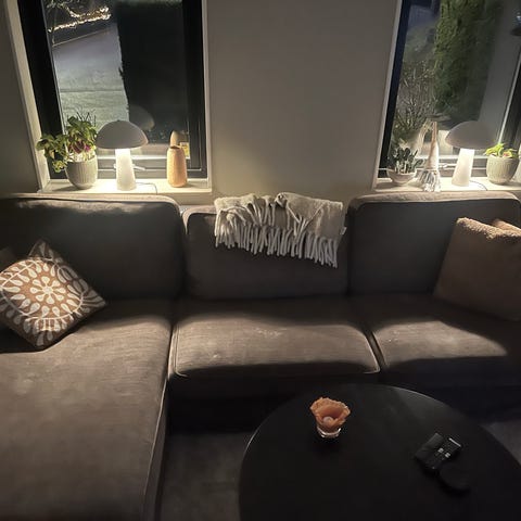 Soffan blev smutsig i klädseln under flytten men det är avtagbar klädsel som går att tvätta. I övrigt bra skick.