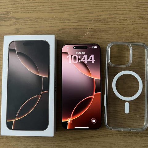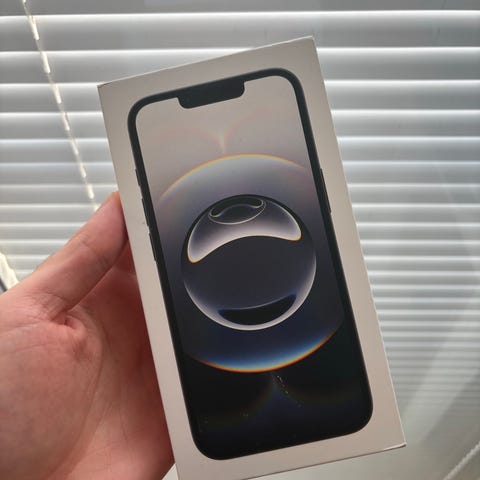 Apple iPhone 16 mobiltelefon med 256 GB lagringskapacitet i svart färg. Telefonen har ett skadat bakstycke men är funktionell med ett batteri i gott skick. (94% maximal kapacitet) Levereras med ett transparent skyddsfodral. Den nedre volymknappen kan strula ibland och stänga av ljudet helt, vilket kan fixas genom att starta om telefonen.