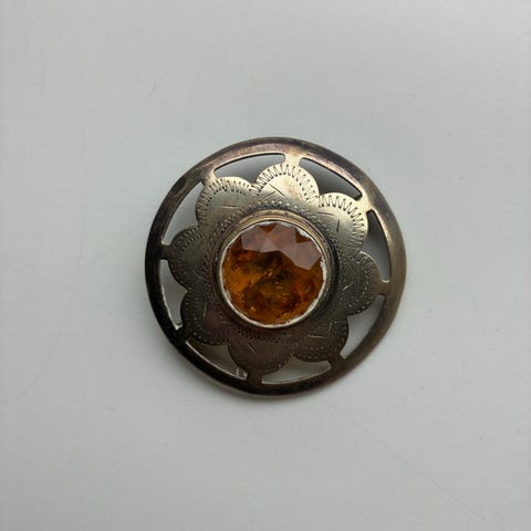 Vacker rund brosch med kristaller. Sparsamt använd.