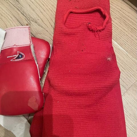 Nippon Sport Handmitt i storlek S, färg röd. Handsken är för jujutsu enligt hensidan med vaddering för skydd.
