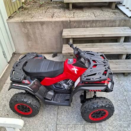 Tuff elektrisk mini el-ATV (fyrhjuling) för barn med hela 1000W kraftig elmotor som går i upp till 35km/tim. Det går att begränsa maxhastigheten i tre steg till ca 10 eller 20km/tim med nyckel, vilket gör att även yngre barn kan börja köra i lägre hastigheter. Fyrhjulingen är utrustad med 13,5" luftfyllda terränghjul vilket gör att den lätt tar sig fram på svårt underlag, samt på stigar och grusvägar.