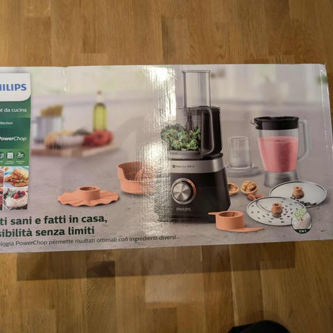 Oanvänd https://www.home-appliances.philips/se/sv/p/HR7778_00?srsltid=AfmBOoqezojE9olbq_sdIVLJ4-o_LMbOM5liYE7pMPu-kdjqmyzt7VcY9iU. Alla delar finns utom en liten spatel.