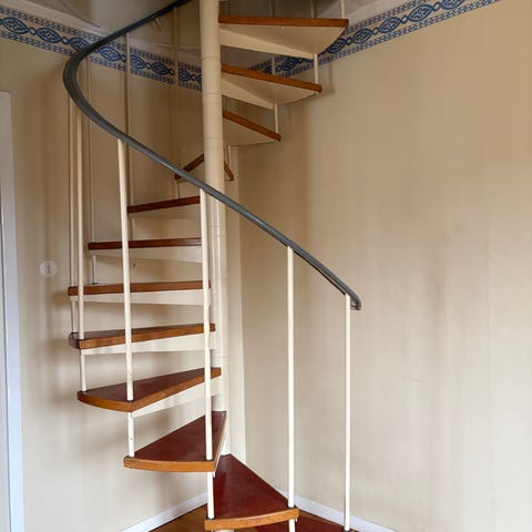 Trappa i svart metall med räcke