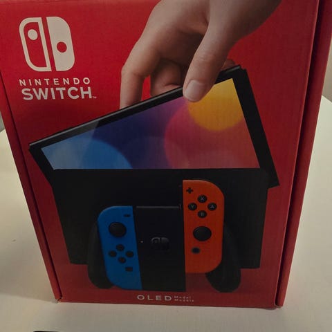 Använt få tal gånger och säljas pga låg intresse. Nintendo Switch spelkonsol med blå och röd Joy-Con-kontroller. Paketet inkluderar konsol, Joy-Con-kontroller, laddningsdocka, laddningskabel och tre spel: Star Wars, Minecraft och Minecraft Dungeons. En bärväska medföljer också. Produkten är avsedd för allmän användning.