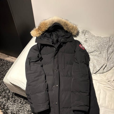 Canada Goose vinterjacka i storlek S för herr. Jackan är svart och tillverkad i polyester. Designad för att ge värme och skydd under kalla förhållanden.