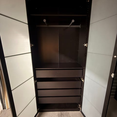 Fint 2 stycken slim Pax garderober med spegeldörr från Ikea i gott skick, finns ingen skador eller fel och repiga. Perfekt för små sovrummet eller Hallen