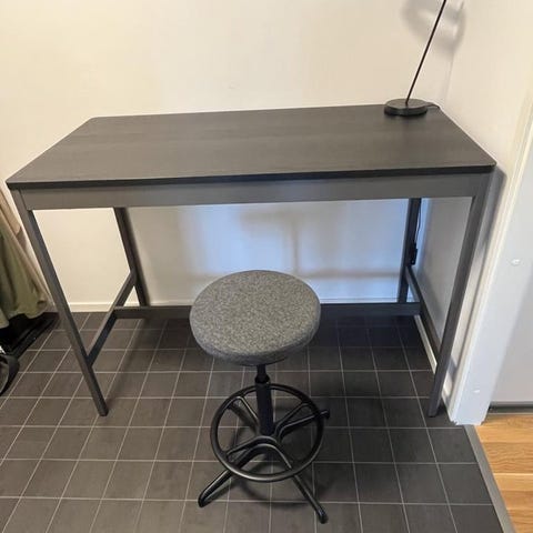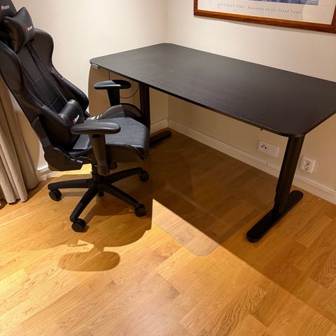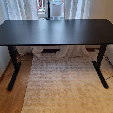 Stort svart skrivbord 80x120 cm med rundade hörn.