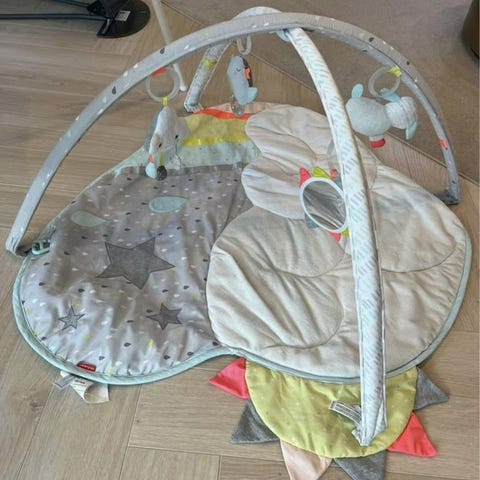Tiny love aktivitetsmatta för barn med färgglada motiv och lekfulla detaljer. Mattan har olika texturer och hängande leksaker för stimulans och motorisk träning.