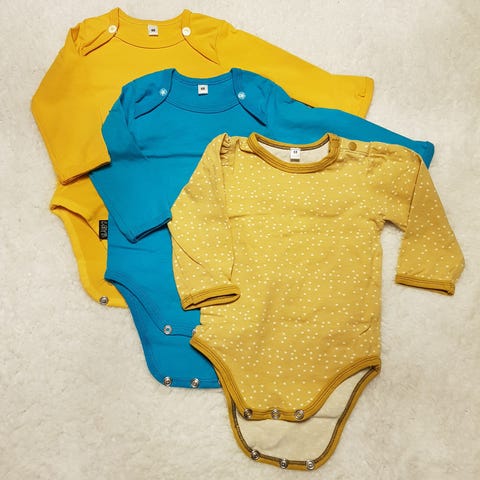 4 st långärmade bodies från Polarn O. Pyret i storlek 68. Använda men i bra skick.