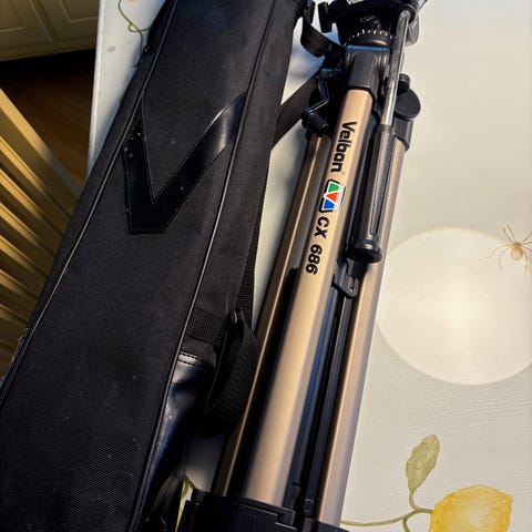 Ett lättviktsstativ för kamera och video. Aluminium-ben. Kan justeras mellan ca 50-145cm höjd.