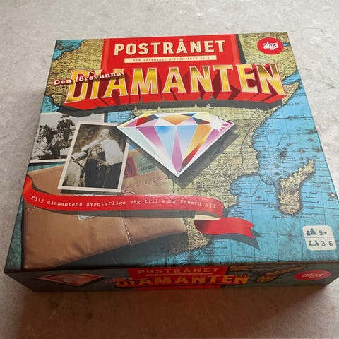 Komplett och välbevarat set med kort, tärning, timglas och ritblock.