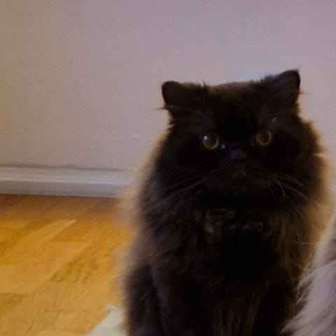 Mamma & pappa är renrasig långhåriga brittisk utan stamtavla. Hon har lungt temperamentet och är oerhört sällskaplig/knäkatt.