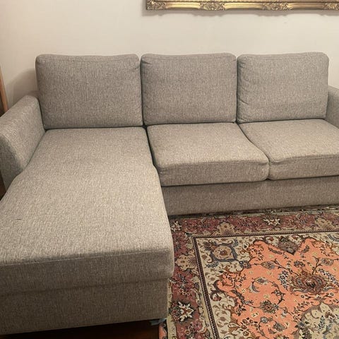Vi ska flytta och säljer pga att den inte får plats i nya lägenheten. Soffan är i väldigt bra skick, inget slitage eller liknande.