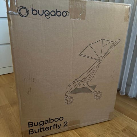 Bugaboo barnvagn i svart färg. Har säkerhetsbälte och avtagbar bygel. Kompakt hopfällbar design för enkel förvaring och transport.
