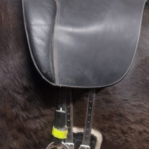 Äldre sadel i toppskick, mycket skön sadel, passar rak till något svängd rygg. Medium wide. Haft på islandshäst men passar även vanlig häst.