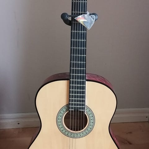 Märk och modell : Cataluna SGN C-61, är ett perfekt nybörjarinstrument i 3/4 storlek som är mycket lättspelat och omtyckt. Rekommenderas av många musiklärare. Vikt : 3.00 kg, inköpspris 1500 kr. Ingår instructions bok hur man lära sig att spela gitarr.