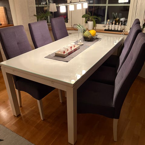 Bordsskivan finns tecken på användning (se bild), touchpenna, men inget som stör enligt mig, går säkert att få bort för den pilliga 🥰