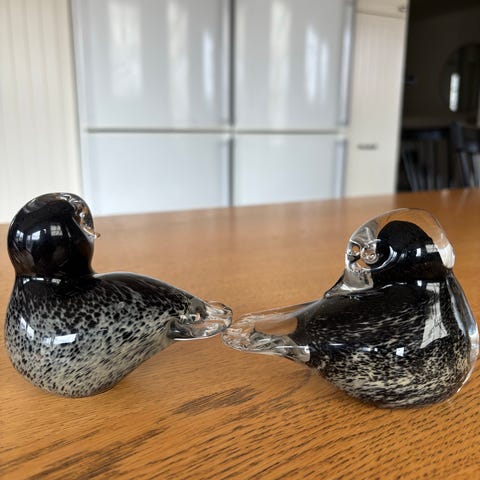 äljer en glassvan i munblåst konstglas från Ronneby, märkt FM.