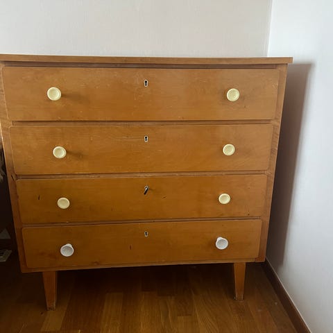 Liten fin nymålad/tapetserad byrå 1940-tal.