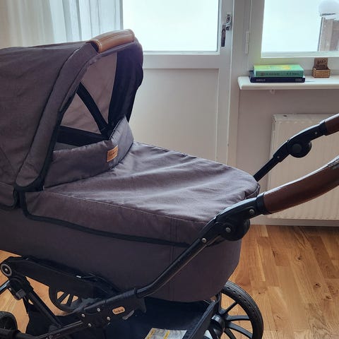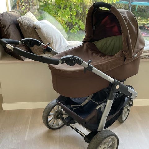 Barnvagn med liggdel, sittdel, parasoll, skötväska och mycket mer.