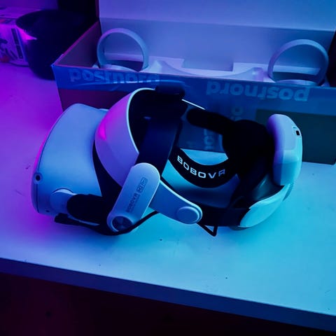 Mycket bättre än Original Meta Quest bandet, sitter ordentligt fast på huvudet, spännskruv på baksidan, inbyggd fläkt mm