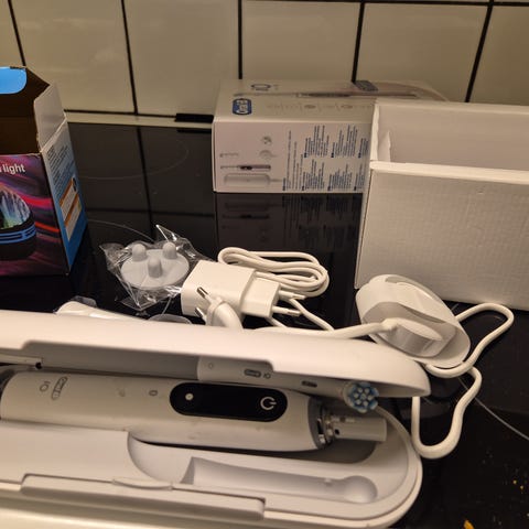 Inkluderar USB-C-laddningskabel, väggfästen och borsthuvuden