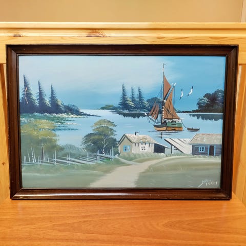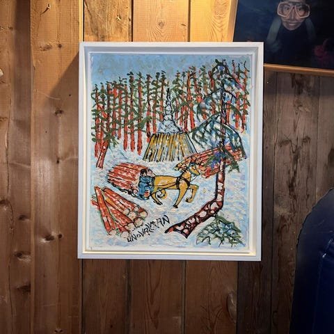 Stor och färggrann tavla av Gällivarekonstnären Bert Jonsson från 1969.