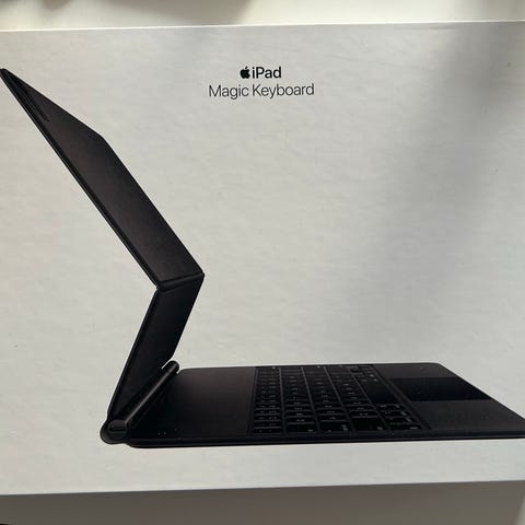 Säljer ett Apple Magic Keyboard med inbyggd styrplatta, i mycket fint skick. Passar perfekt till nya iPad Air 13 tum och ger en laptop‑liknande upplevelse med bekväm skrivkänsla och smidig navigering.