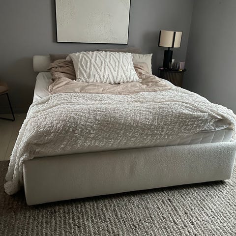 Sängstomme från IKEA, modell NEIDEN, i storlek 160x200 cm. Inkluderar ribbotten LURÖY och bäddmadrass TUSTNA.