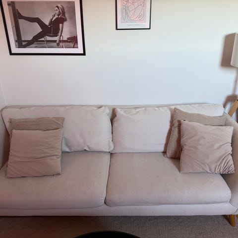 Sittriktig och skön soffa inköpt på Mio för några år sedan, kvitto finns. Avtagbara och tvättbara överdrag till samtliga dynor. Inga fläckar. Säljes på grund av platsbrist då vi ska renovera dotterns rum. Finns på Ribersborg i Malmö, sjunde våningen med hiss, där soffan får plats.