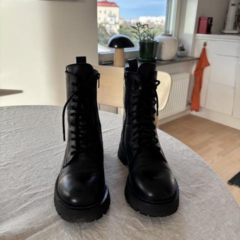 Demonia skinnkängor strl 39 med dragkedja på sidorna.