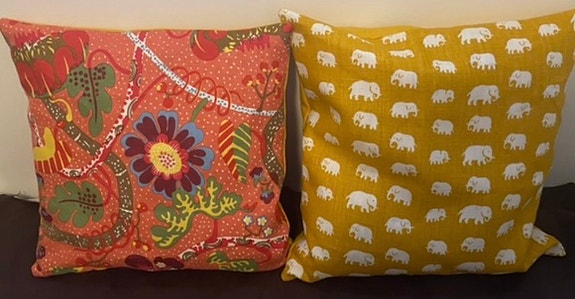 Kuddar med Svenskt Tenn tyg på bägge sidorna: