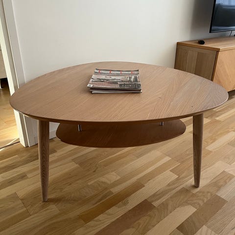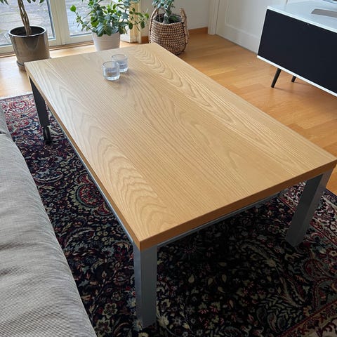 Ikea STOCKHOLM soffbord i ek och i klassisk och tidlös design. Bordet har vissa fanerskador(se bilder), vilket återspeglas i det låga priset. Säljes för 2000 kr, trots att liknande bord ofta når betydligt högre priser på auktion.