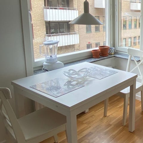 Bord med iläggsskiva 40 cm. Med skivan ilagd är bordet 135 cm
