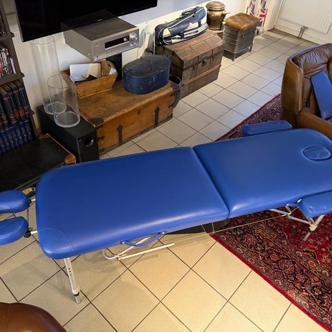 I hopfällbart skick 40x75cm. Bänken har en stabil metallram och används för massage eller terapi.