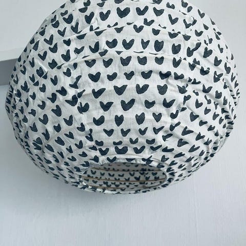 Perfekt som taklampa i barnrum, där det lekfulla mönstret ger trygg stämning utan att kännas barnsligt. Lika fin i vardagsrum, sovrum eller ateljé – ett mjukt men tydligt blickfång även i större rum med högt i tak.