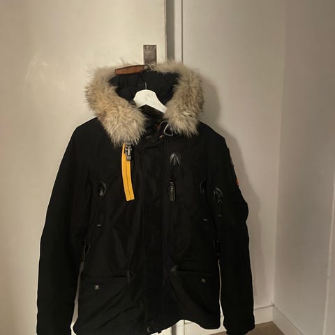 Parajumpers jacka i storlek XL, grön färg. Avtagbart dunfoder och äkta päls på huvan. Naturligtvis äkta och inköpt på Care of Carl men har tyvärr inte kvittot kvar, men kolla id-numret och QR koden på bilderna. Har burit den ett tiotal gånger så skicket är fint.