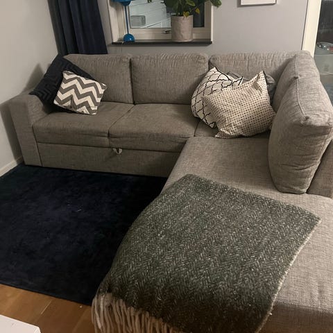 Bäddsoffa i fint skick! Använd dagligen av enskild person. Haft soffan i ca 4 år. Håller sig mycket bra. Extra tåligt tyg, slitstark. Går att spegelvända.
