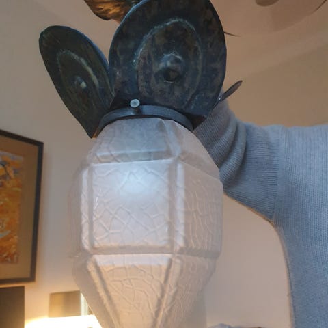 Taklampa Metalglaskupa Jugendstil H65,Dia 34