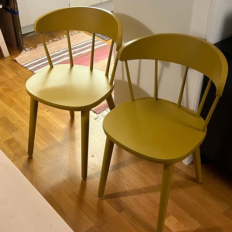 3 st Odger-stolar i färgen beige åt det varma puderrosa hållet. Stolen är tillverkad i kompositmaterial med en blandning av träfiber och plast. Matt yta.