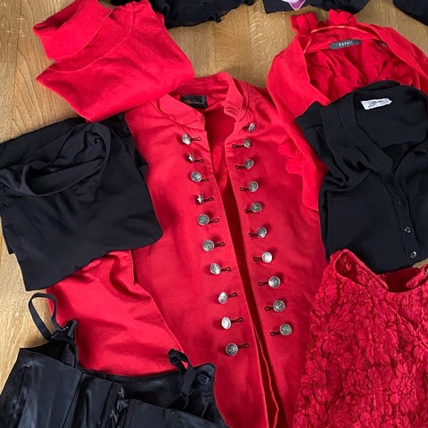 Den röd kjol och gröna duppatta är helt ny, oanvänd , måste sy ihop blusen .