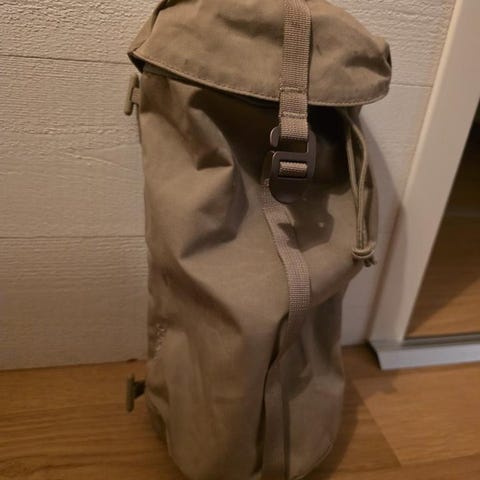 Fjällräven ryggsäck i röd färg. Tillverkad av slitstarkt material med justerbara remmar och flera fack för förvaring. Passar för utomhusaktiviteter och vardagsbruk.