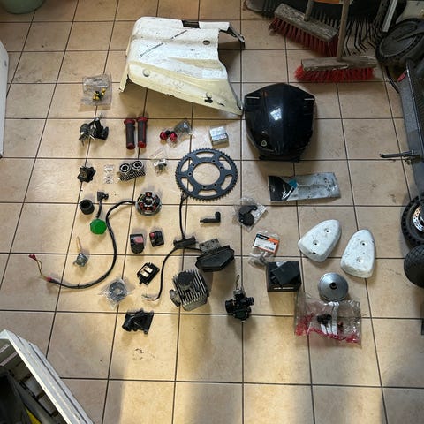 Reservdelsmoped, med kåpor, batterier m.m.